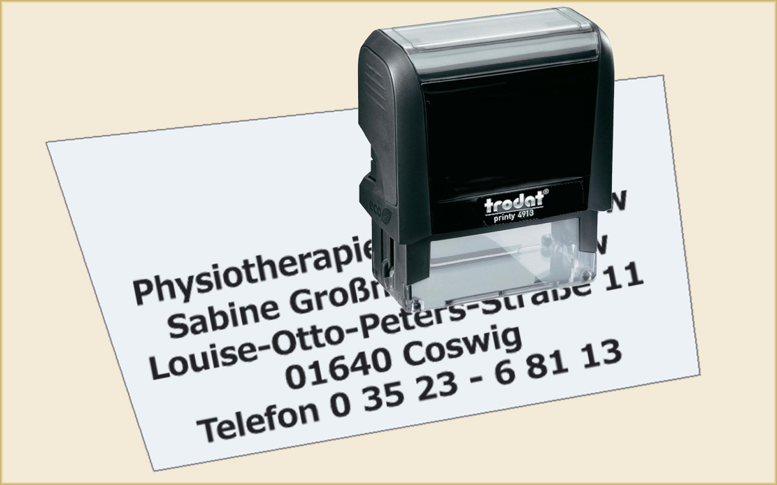 Stempel, ganz individuell gestaltet, als einfacher Holzstempel mit Stempelkissen zu nutzen oder als Stempelautomat, mit integriertem Kissen. Firmen- oder Praxisstempel, Datums- & Nummernstempel, Stempel für Buchhaltung oder für private Zwecke, die Einsatzmöglichkeiten sind enorm.